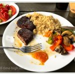 Nachdem wir uns erholt hatten ging es zurück auf den Campingplatz und ich durfte das dortige BBQ benutzen, um unsere Steaks zu grillen. Ein Vier-Flammen-Gasgrill mit Seitenkocher und Backburner. Coole Ausstattung haben die da am Platz. Es gab Filet mit Reis und Gemüse. Gut, der Reis kam nicht vom Grill, sondern aus der Mikrowelle.