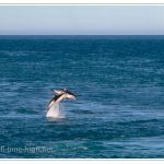 Hadley, unser Guide, meinte, dass sie jetzt wohl schlafen und Wale, die schlafen, hört man nicht und sieht man eben nicht an der Oberfläche. Der Kapitän entschied sich dann, wieder zu den Finnwalen zu fahren und auf dem Weg zurück zum Hafen hatten wir noch einen Schwarm Dusky Dolphins (Schwarzdelfine) aufgetan. Sie tummelten sich direkt um das Schiff und sprangen aus dem Wasser, dass es eine reine Freude war!