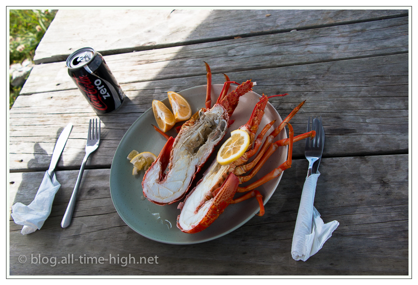 Wir entschieden uns für die Languste quasi als zweites Frühstück, und das war ein weiteres ‚erstes Mal‘ für uns, wir hatten beide nämlich noch keine fangfrischen Langusten gegessen. Und es war ausgezeichnet, wir haben es nicht bereut.