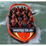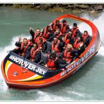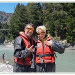 Pünktlich um 12 waren wir am Check-In und eine viertel Stunde später stiegen wir in den Bus, der uns zur Basis am Shotover Canyon brachte. Wir hatten als erstes die Jetbootfahrt gebucht. Wir bekamen unsere Ausrüstung, Regenpelerine und Schwimmweste und ab ging’s auf’s Boot. Die Sicherheitseinweisung von Phil, unserem Kapitän, war recht einfach: nicht aufstehen, nicht hinauslehnen, am Handgriff festhalten. Und ab ging der wilde Ritt.