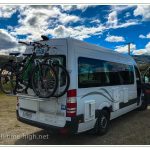 Unser Camper hat zum Glück einen Fahrradträger montiert, so dass wir die Räder gleich zum Camp mitnehmen konnten, wo wir am nächsten Morgen um 08:30 Uhr von Peter mit dem Shuttle abgeholt werden. Er fährt uns dann zum Roxburgh Dam, von wo unsere Tour zurück nach Alexandra startet.