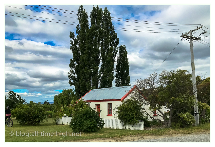 Am Five Rivers Café traf die Mossburn – Five Rivers Road wieder auf die Southern Scenic Route, auf der wir bereits den Großteil der letzten Tage unterwegs waren. In Athol kamen wir an einem typischen Dorfschulhaus vorbei, das ich gleich fotografieren musste. Nein, das ist keine Museumsschule, da sind wirklich Kinder drin.