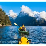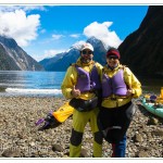 Die Einweisung ins Kayaking und die Einkleidung ging relativ zügig vonstatten, so dass wir um ca. 8 Uhr losfahren konnten. In drei Gruppen mit jeweils einem Guide und in Zweierkayaks machten wir uns auf dem Weg in den Milford Sound. Der Name “Sunriser Tour” trifft es schon ganz gut, denn die Sonne war wirklich nicht viel früher als wir da. Kunststück bei den hohen Bergen rundherum.