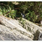 Aber als dann die Berge frei vom Nebel da standen und wir lautlos – bis auf das Platschen der Paddel – durch das Wasser glitten, das war schon beeindruckend. Nach kurzer Zeit versuchten wir, wie Jack es nannte etwas “Wildlife” zu sehen, also Tierwelt, die am Sound so vorkommt. Und? Was denkt ihr, war das erste, was wir zu sehen bekamen? Einen Gelbaugenpinguin, der aber schnell wieder im Gebüsch des Ufers verschwand. Allerdings zeigten sich gleich darauf noch zwei Artgenossen. Pinguine in freier Wildbahn, wann hat man das schon mal? Und noch dazu welche der seltensten Gattung.