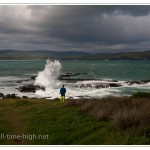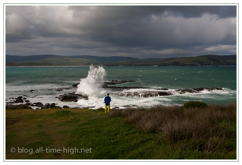 Um kurz nach zwölf waren wir dann wieder aus dem Wasser und machten uns auf, an den südlichsten Punkt unserer Reise: Curio Bay Camping Ground. Das ist fast der südlichste Punkt der Südinsel Neuseelands, noch südlicher ist nur noch Slope Point, und zwar um ca. 1,5km, also nicht wirklich der Rede wert. Von hier bis zum Südpol sind es nur noch 4800km! Weiter weg von zuhause geht für uns auf dieser Reise nicht mehr.