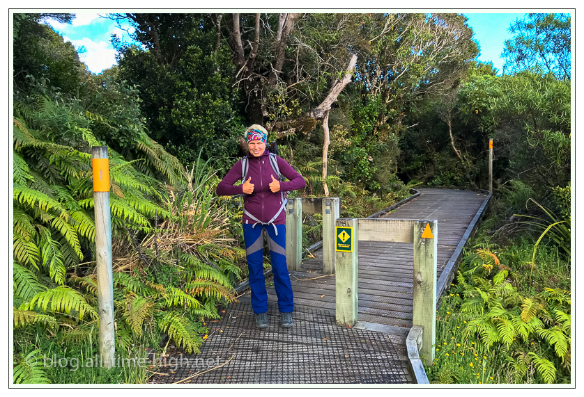 Als der Fahrweg aufhörte hatten wir die Mobilfunkstation am Mt Taranaki erreicht und bis zum Ziel des ersten Abschnittes, der Tahurangi Lodge waren’s nur noch ein paar Höhenmeter, die zum Teil auf Holztreppen, die als Weg dienten zurückgelegt wurden. Dieser erste Abschnitt sollte der leichteste Teil der Tour sein.