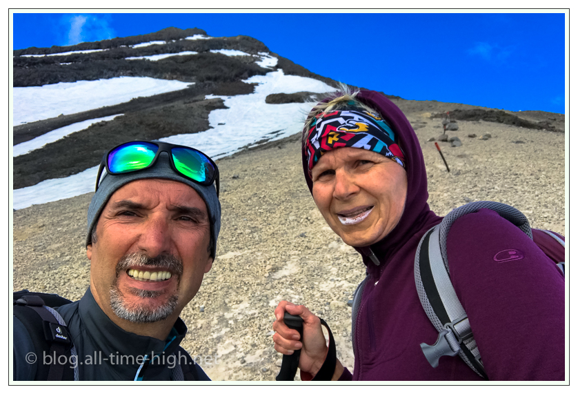 Und so war es dann auch nach zwei Dritteln des Geröllfeldes klar, dass wir nicht mehr weitergehen. Vor allem mental machte das Geröll zu schaffen. Die Anstrengung war mittlerweile so groß, dass ein Aufstieg bis auf den Gipfel bedeutet hätte, dass oben alle Kraftreserven verbraucht gewesen wären. Und dabei ist der Gipfel ja nur die halbe Strecke, was viele immer vergessen, denn der Weg nach unten ist ja nicht minder anstrengend, denn die gleichen Herausforderungen warten ja nochmal.