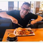 Am Abend blieb unsere Küche kalt und wir vertrauten auf die Kochkünste des neuen Camprestaurants. Wir wurden nicht enttäuscht, es gab Surf & Turf, dazu ein paar Bierchen und nach einem Spaziergang zum Strand mit den versteinerten Bäumen sind wir jetzt bettreif.
