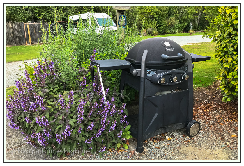 In der Lodge angekommen, fragten wir ob noch ein Stellplatz frei wäre und wir hatten Glück. So verbringen wir die Nacht auf einem der schönsten Campingplätze Neuseelands, der von den netten Betreibern äußerst liebevoll gestaltet und betreut wird. Und Claudia hat auch gleich den Kräutergarten genutzt, um unseren Salat mit frischen Kräutern zu verfeinern, den Gasgrill hatte ich aber tatsächlich zu spät entdeckt, da brutzelten die Hähnchenspieße Sateé schon auf unserem eingebauten BBQ am Camper.