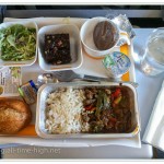 Jetzt, wo ich alles so schön geschrieben habe und wir die ersten Snacks und ein Glas – na gut, es war ein Becher – Weißwein erhalten haben, kommt die Durchsage, dass es nun doch andere Speisen, als in der Menükarte angegeben, gibt. Hab mir aber leider die Reihenfolge nicht gemerkt, ging zu schnell. Aber es hat auch ganz gut geklungen, wir sind gespannt.