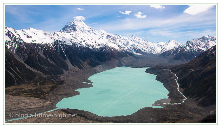 Wir gingen am Lower Lookout vorbei und stiegen eine weitere halbe Stunde bergwärts, bis wir am oberen Aussichtspunkt angekommen waren. Ein atemberaubender Anblick bot sich uns dort. Gleich mehrere Wasserfälle stürzten ins Tal, alle gespeist vom ewigen Eis des Gletschers. Wir genehmigten uns unsere Brotzeit und genossen die Eindrücke, die sich uns boten.