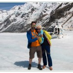 Zwei Mal hörten wir lautes Krachen und als wir nach oben sahen, konnten wir sehen, wie sich eine große Menge Eis gelöst hatte und nach unten stürzte. Der darunter liegende Wasserfall wuchs darauf hin kurz an und nach einer Minute war alles wieder so wie vorher.
