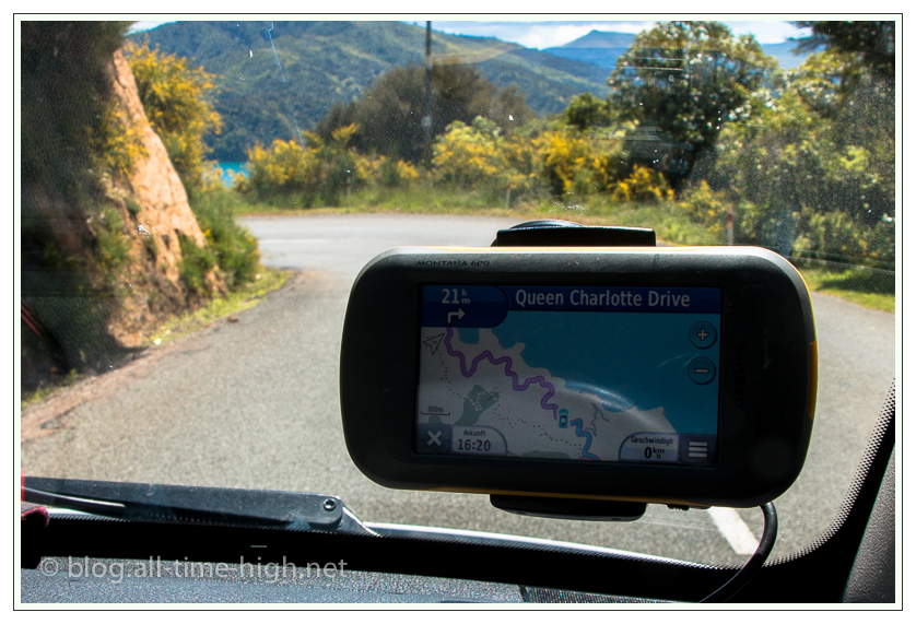 Schnell noch den Tank vollgemacht, und dann ging das Abenteuer auf der Südinsel los. Die ersten Kilometer auf dem Queen Charlotte Drive haben mich wieder mal belehrt, dass Mann den Tag nicht vor dem Abend, sprich die Motorradstrecken im Norden nicht vor denen im Süden, loben sollte. Das war – wieder mal – der pure Hammer, was da an Straße an der Küste entlang führte. Eigentlich hätten wir alle 500 m an einem der Aussichtspunkte stehen bleiben können, aber dann hätten wir Tage gebraucht, um unser Tagesziel zu erreichen.