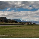Unser Zwischenhalt am Lake Tekapo diente eigentlich nur dazu, nochmal die Kirche am Seeufer zu fotografieren, in der Hoffnung, dass diesmal nicht Busladungen von Asiaten herumschwirrten. Je näher wir der Kirche kamen, desto tiefer sank unsere Hoffnung. Aber wir haben Glück gehabt und eine Gruppe von Fotografen wartete ebenso wie wir auf den perfekten Moment. Einer davon vertrieb lautstark alle “störenden” Motive aus dem Bild und so gelang es mir tatsächlich, ein Foto von der Church of the Good Shepherd zu schießen ohne, dass Leute darauf waren.