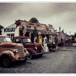Begleitet von gelegentlichen Nieselschauern führte uns unser Weg auf dem Alpine Highway über den Burkes Pass. Dort fanden wir eine ziemlich außergewöhnliche Ansammlung von Oldtimern nebst einer alten Tankstelle mit Souvenirshop. Die Sammler betreiben außerdem ein Café in einem alten Wohnwagen, eine Zimmervermietung und eine Schreinerei, die massive Gartenmöbel aus Holz und die Innenausstattung von Schäferwagen herstellt.