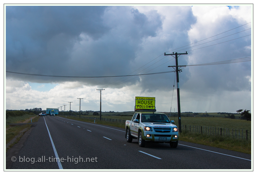 Da die Etappe über den Forgotten World Highway nach Ohawe ja so nicht geplant war, fuhren wir dann einfach in Richtung Wellington und ließen uns überraschen, was denn die Gegend so bringt. Und neben wieder einmal tollen Landschaften und einem entgegenkommenden Haus brachte sie uns auch nach Palmerston North, denn dort sollte das New Zealand Rugby Museum beheimatet sein. So zumindest die Ankündigung an einer Hinweistafel ein paar Kilometer zuvor. Na gut, liegt zwar nicht direkt auf der Strecke, aber wenn wir schon kein Spiel live sehen können, weil gerade Sommerpause ist, dann halt wenigstens das Museum, dachten wir uns.