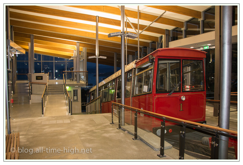 Zum Abschluss des Tages sind wir dann mit der Standseilbahn, dem Wellington Cable Car zum Botanischen Garten gefahren und haben einen grandiosen Blick über die beleuchtete Stadt genossen. Der Rückweg führte uns dann zu Fuß im Dunkeln – unnötig zu erwähnen, dass wir auch Stirnlampen und meine Maglite dabei hatten, die wohlbehalten im Camper lagen – durch den Botanischen Garten wieder zurück zum Motorhome Carpark.