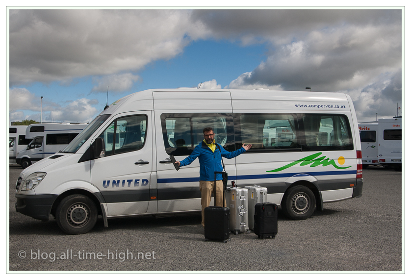Etwas wehmütig war uns  schon zumute als wir “unseren” Camper heute morgen abgegeben haben. Ben, der Shuttle-Fahrer, der uns vom Depot zum Flughafen – das waren immerhin sagenhafte 2 Kilometer – gefahren hat, meinte, wir sollten doch einfach da bleiben, wenn uns das Wegfahren so schwer fällt. Ich habe dann entgegnet, er könnte ja die Fahrt zum Flughafen ein bisschen verlängern: über das Cape Reinga an der Nordspitze der Nordinsel und dann Slope Point am südlichsten Ende der Südinsel. Wir würden auch für die Fähre und das Bier aufkommen. Er meinte dann trocken wenn wir genügend Bier dabei hätten, wäre das kein Problem.